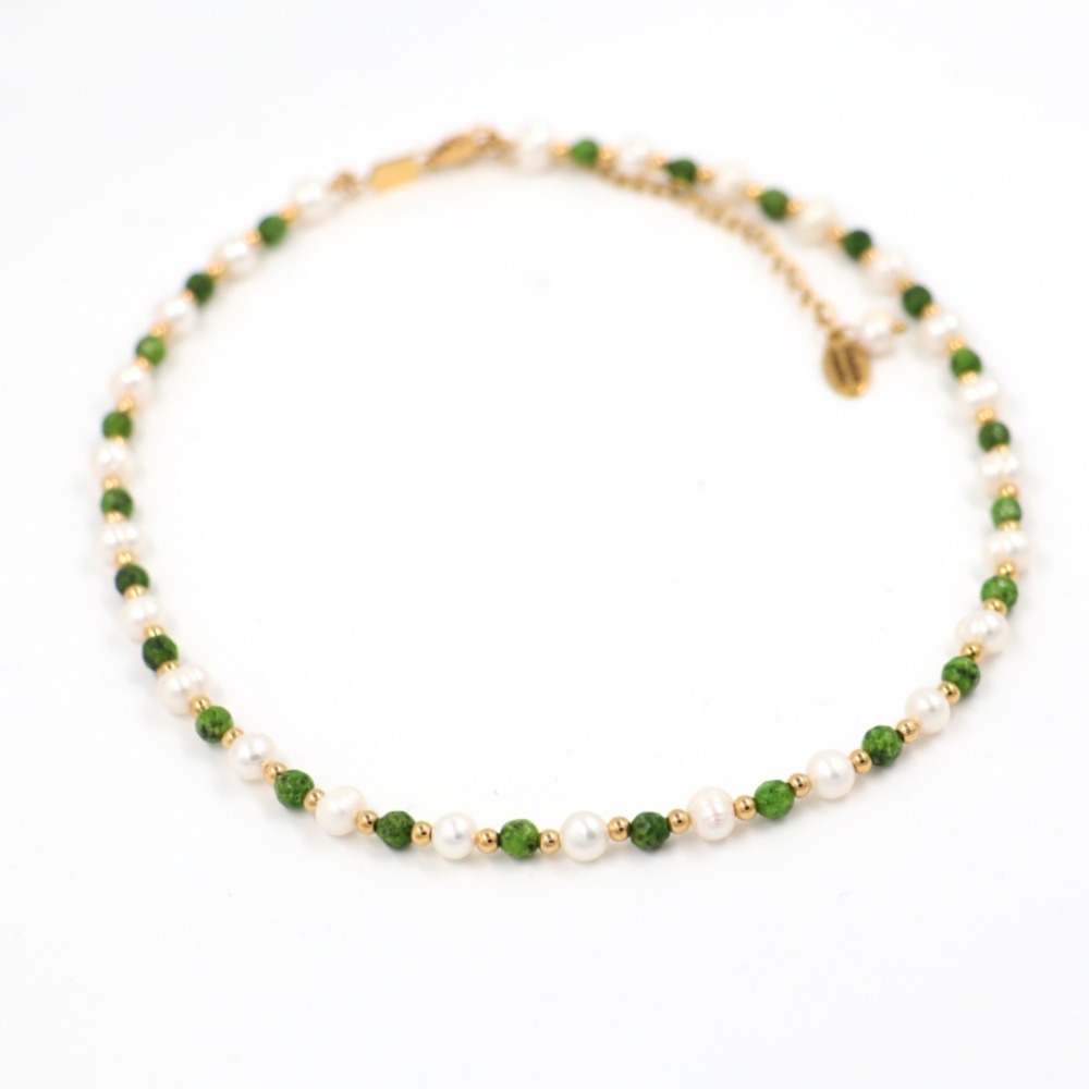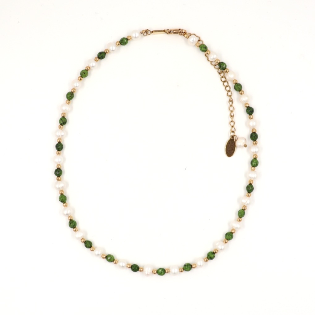 Kurze Kette / Basic Choker mit Süsswasser- und Epidot-Perlen